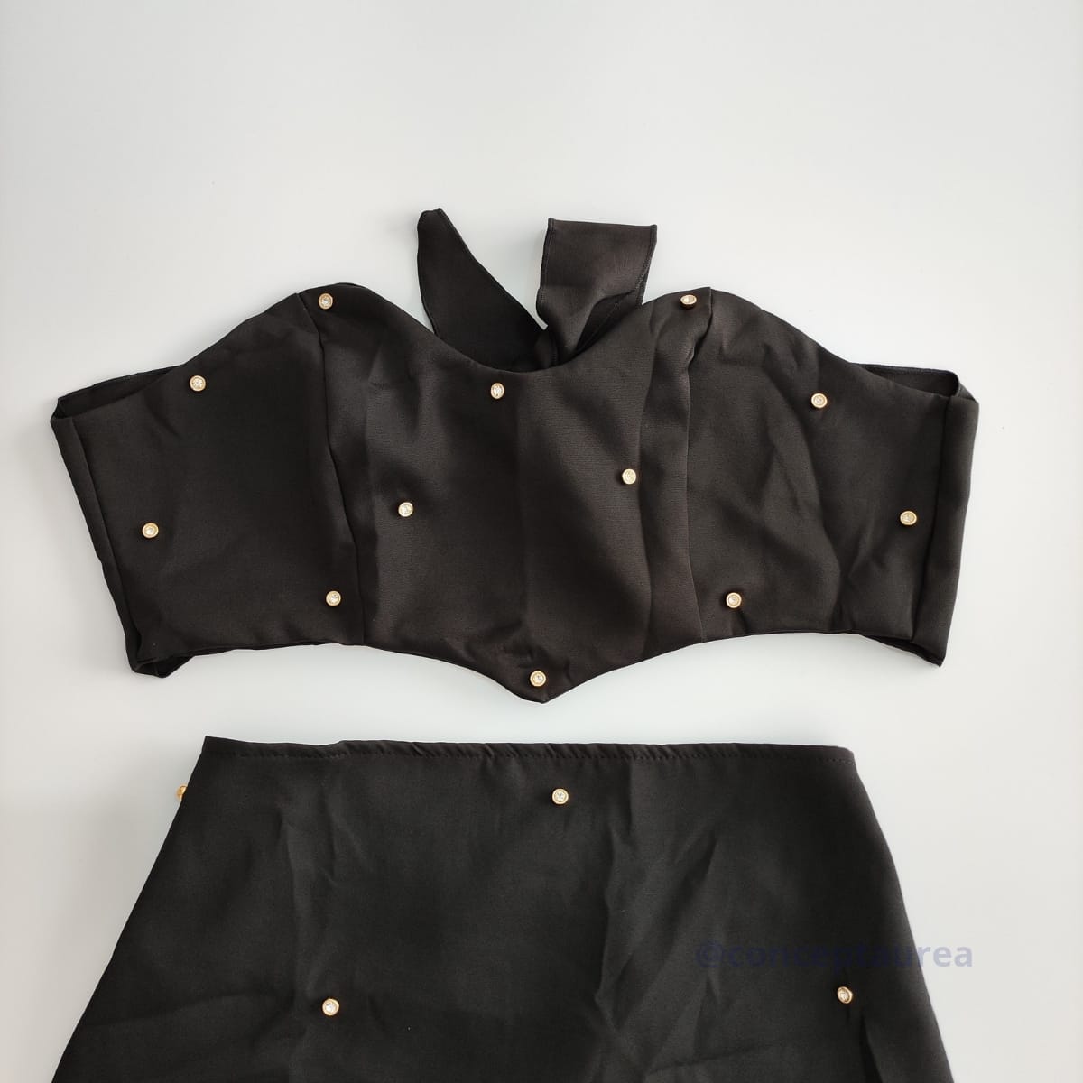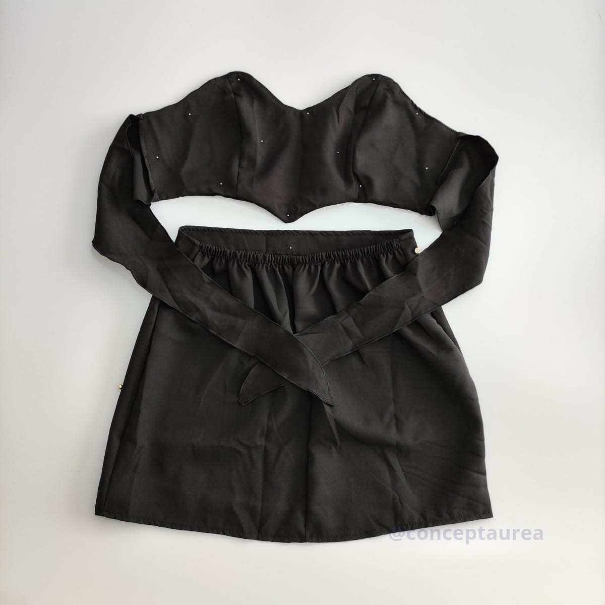 Elegante e versátil, o conjunto preto em tecido alfaiataria combina sofisticação e conforto em peças de caimento estruturado e toque macio. O acabamento valoriza a composição do look, oferecendo um visual moderno e refinado para quem busca presença sem perder praticidade.