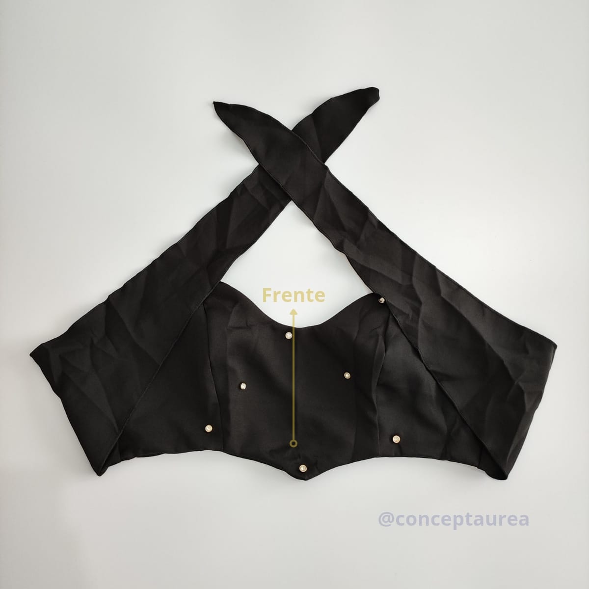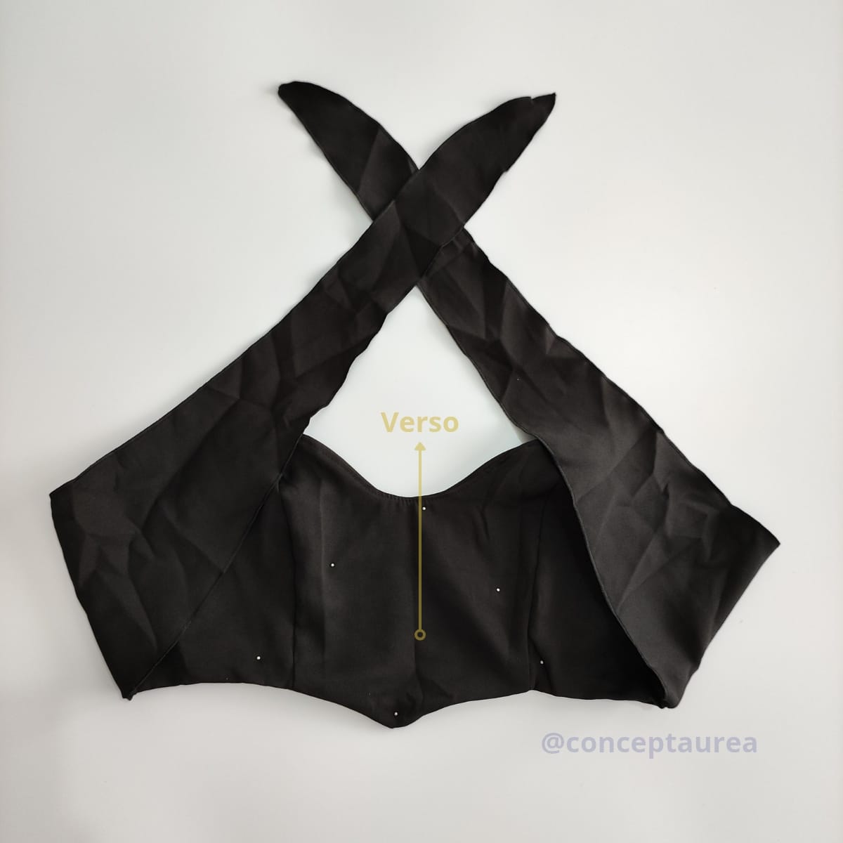 Tamanho único, indicado para quem veste do 36 ao 40, ajustando-se bem ao corpo graças ao corte e à construção do tecido.
