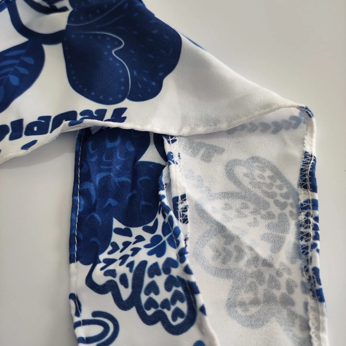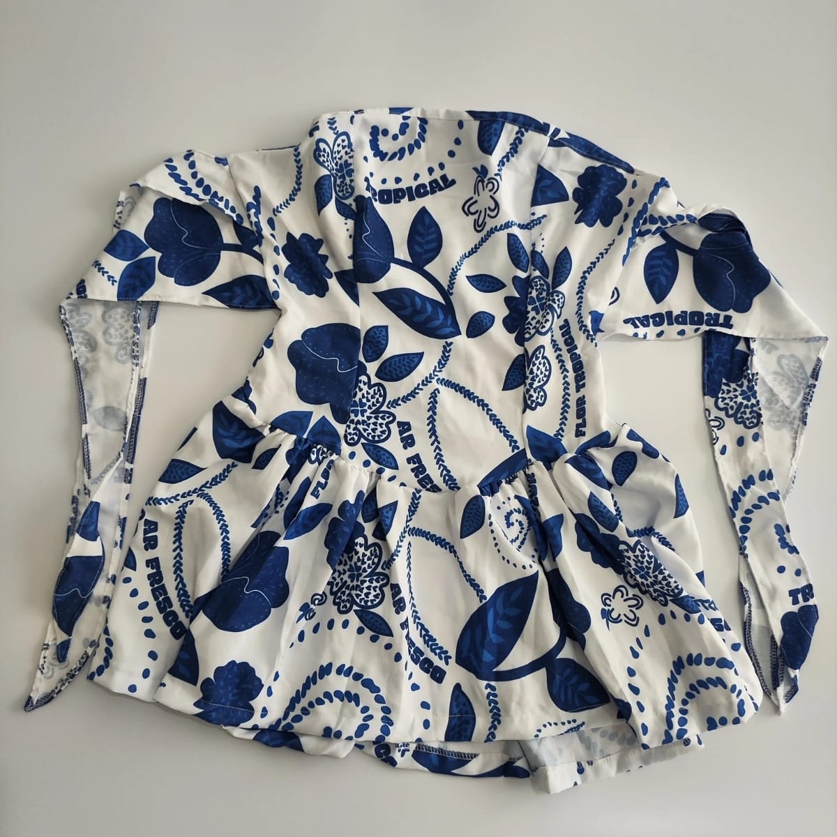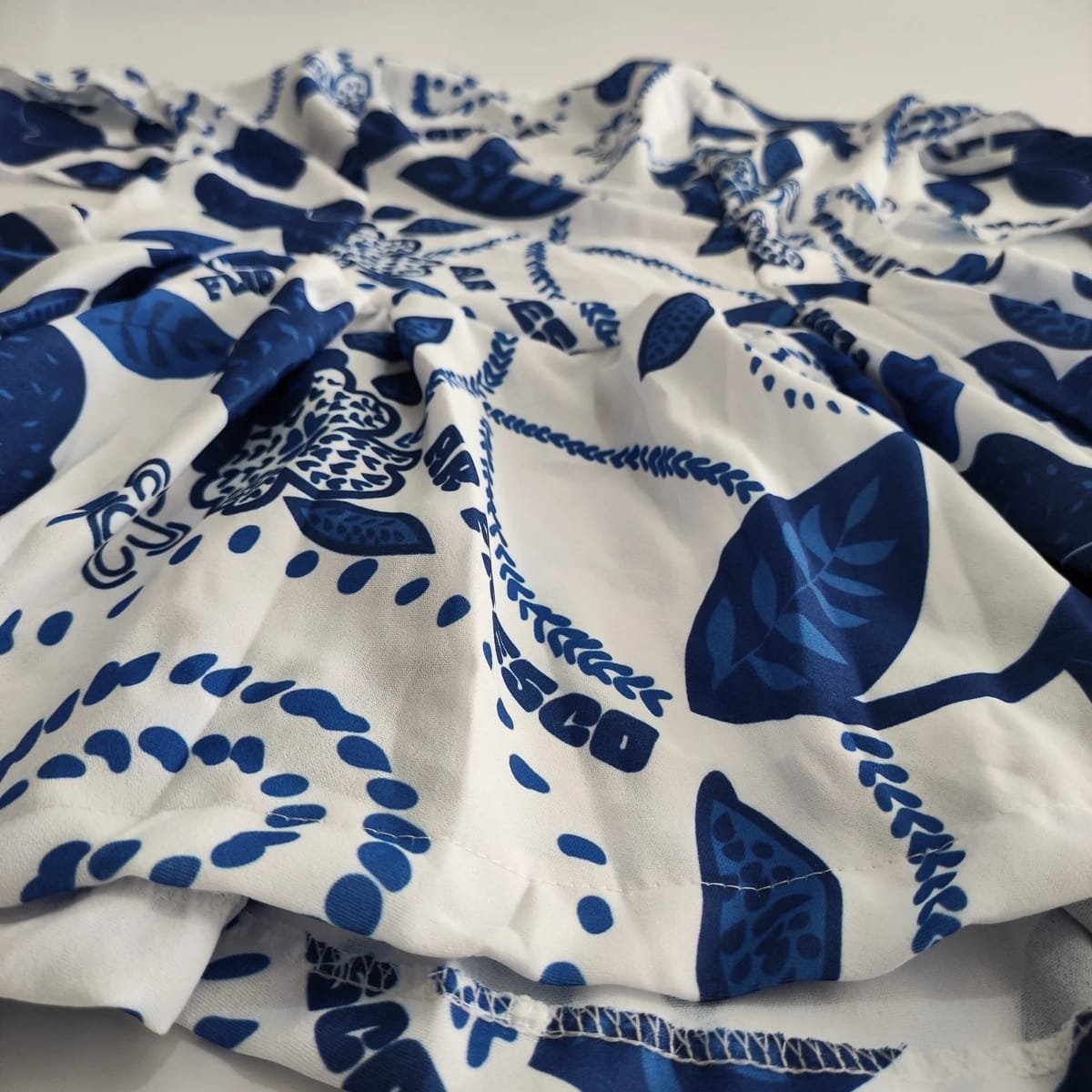 Lavar à mão ou em ciclo delicado na máquina com sabão neutro. Evitar alvejantes e a secagem direta ao sol. Passar em temperatura baixa para manter o caimento e a vivacidade da estampa.